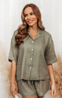 Linen Blend Shorts & Shirt Co-ord - Olive