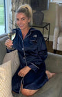 Unwind after a long day or week with the Navy Satin Night Shirt. Our sleep shirt range is designed to help you relax and get ready for a great night’s sleep. Wear inside our outside the bedroom, with the option for personalised pocket embroidery.