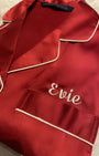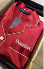 Treat yourself to the perfect pair of short sleeved satin pyjamas with an added option of personalisation. Our Shorty Pj set is ideal for Christmas time, gifts, parties and events. Add your choice of name or initial embroidery above the chest pocket.